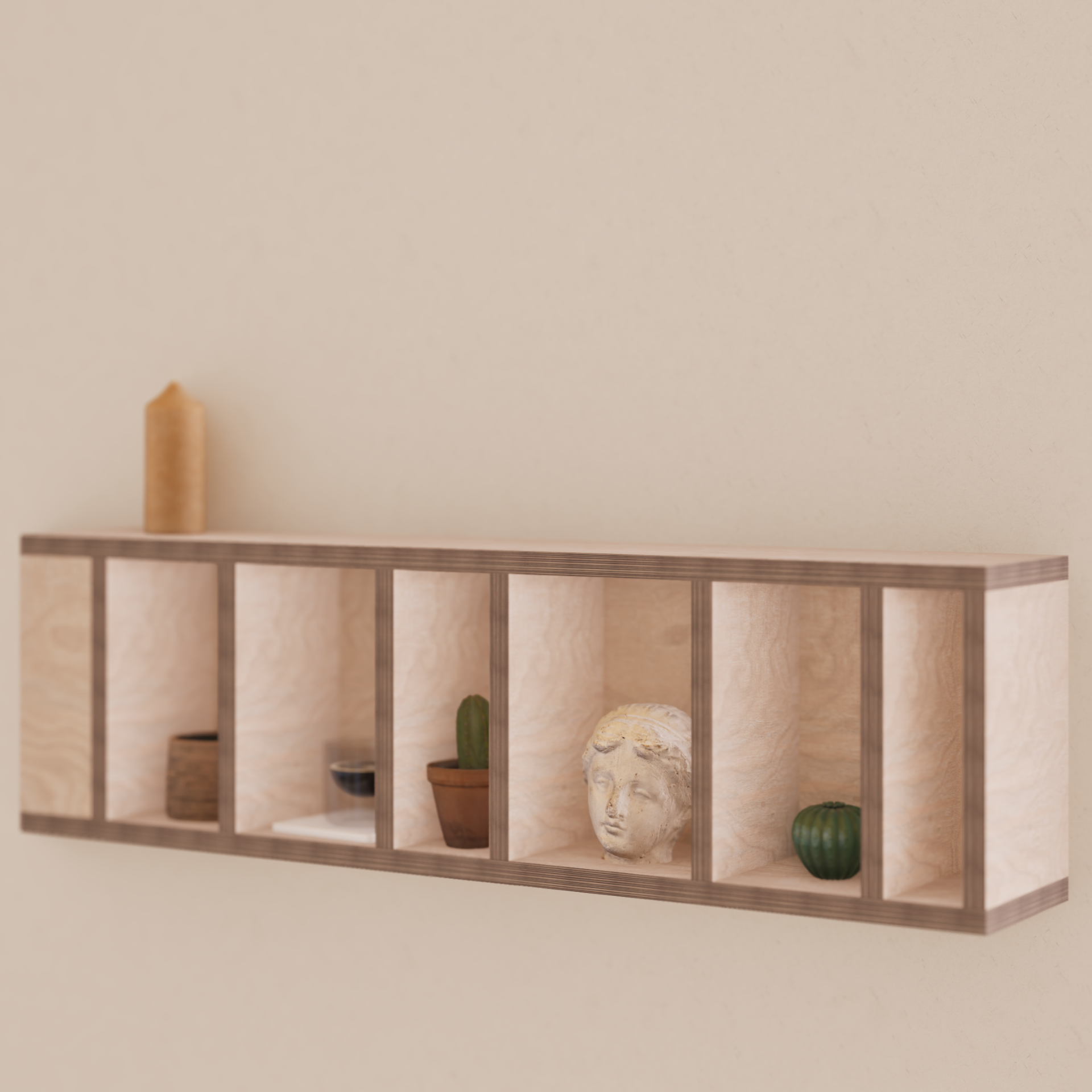 Mounted directly to the wall, the cabinet can be placed at any height and serves as a compact bedside table. Crafted from untreated birch plywood, it offers space for daily essentials — tissues, candles, creams, or a morning coffee. Simple in form and tactile in surface, it reflects a quiet appreciation for everyday functionality.